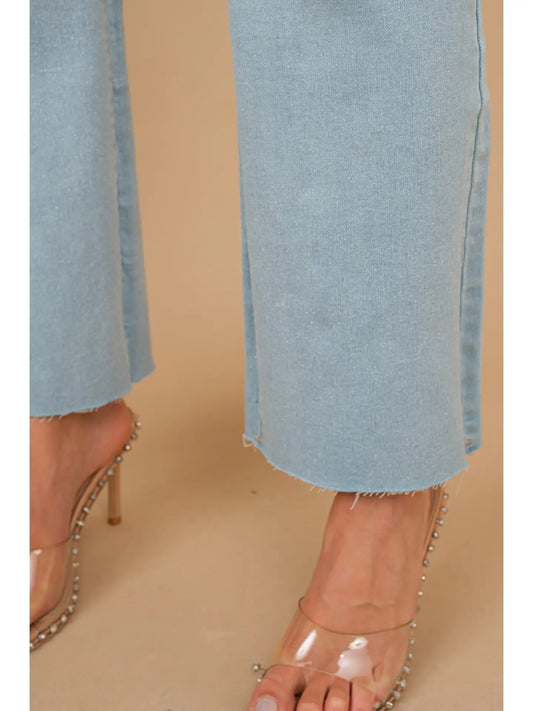 EASEL Ruffle Bottom Hem Palazzo Pants Washed Denim