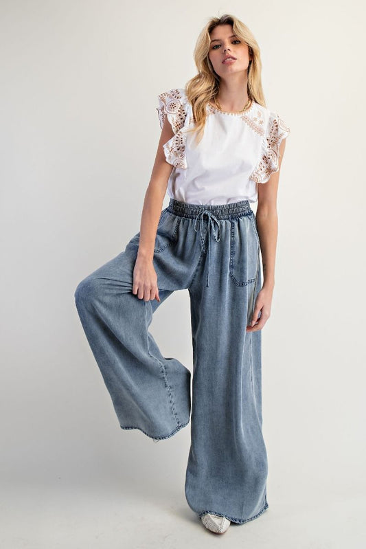 EASEL Chambray Palazzo Pants Washed Denim