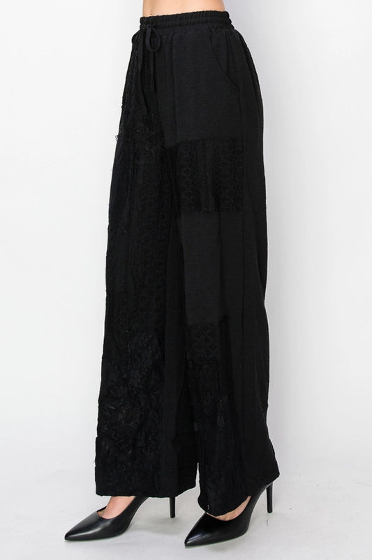 ORIGAMI Relaxed Lace Patchwork Pants with Elastic Drawstring Black