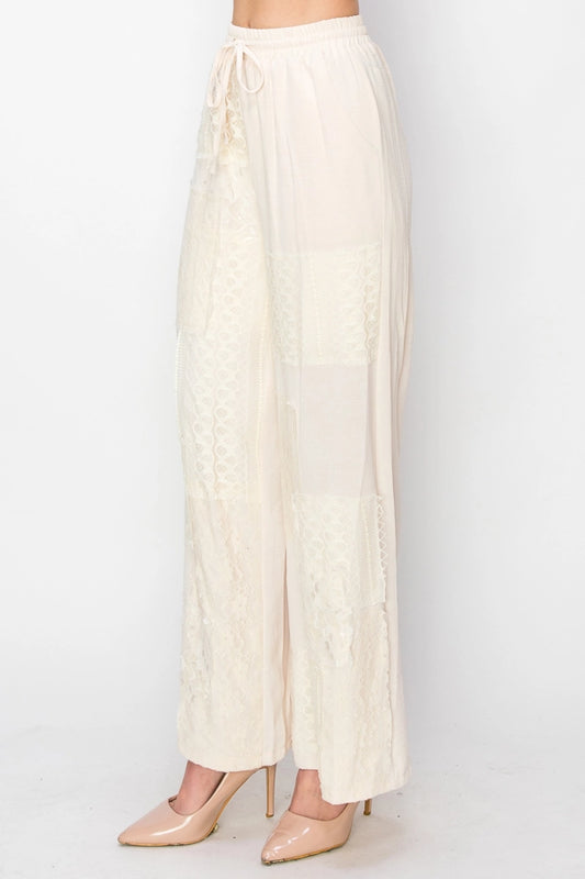 ORIGAMI Relaxed Lace Patchwork Pants with Elastic Drawstring Beige