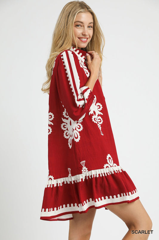 UMGEE Two Tone Abstract Print Mini Dress Scarlet
