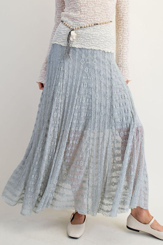 EASEL Allover Lace Maxi Skirt Dusty Blue