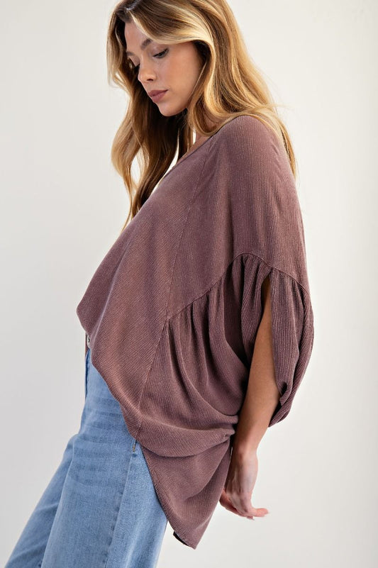 EASEL Mineral Washed Gauze Loose Fit Top Red Bean