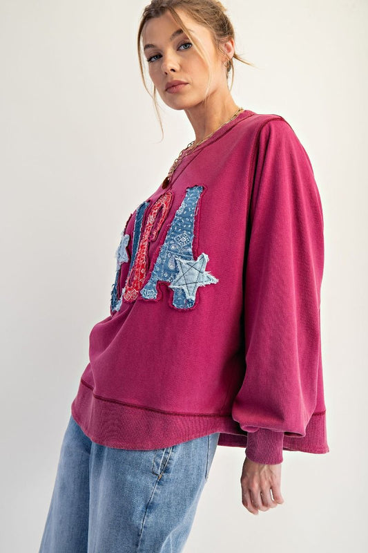 EASEL USA Patch Wash Terry Pullover Mulberry