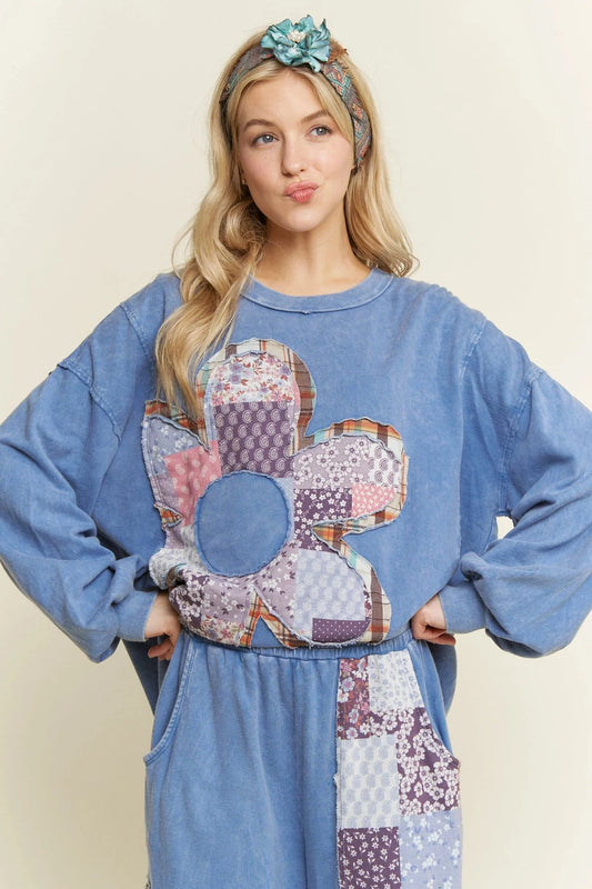 J. HER Mineral Washed Boho Patch Daisy Set Denim Blue