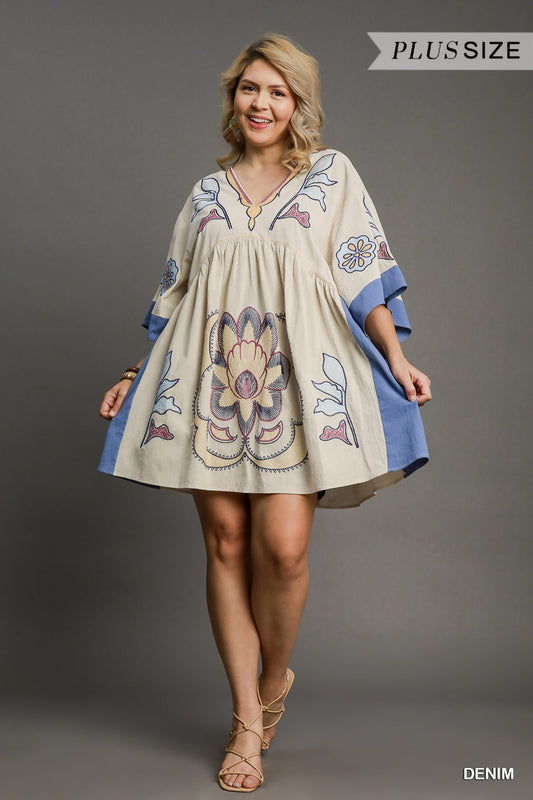 UMGEE Bohemian Embroidered Kaftan Dress Denim PLUS PRETTY