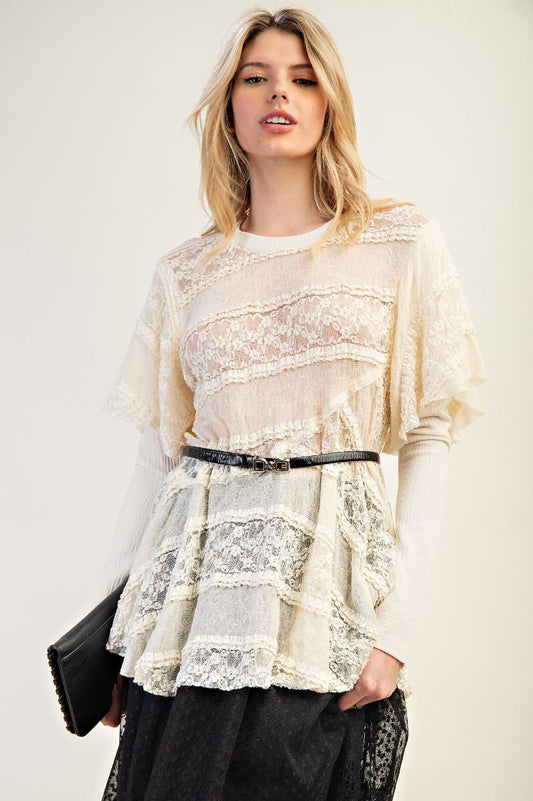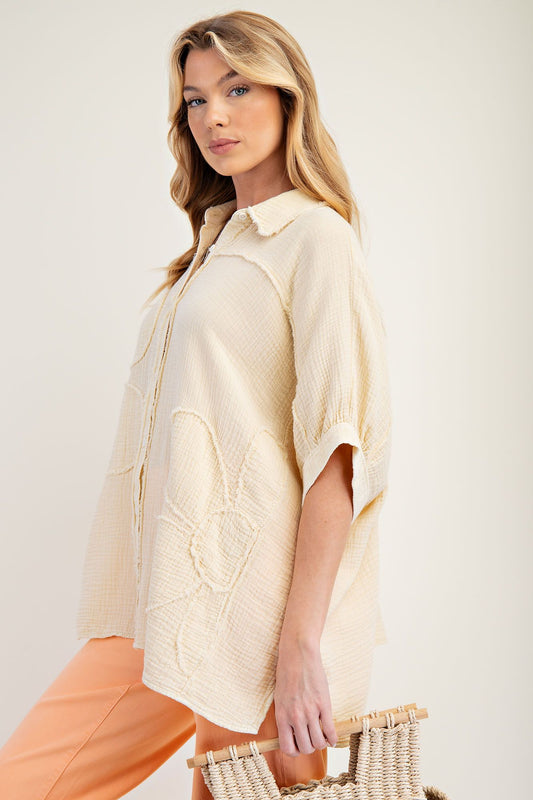 EASEL FLOWER PATCH MINERAL WASHED COTTON GAUZE SHIRT NATURAL PLUS PRETTY