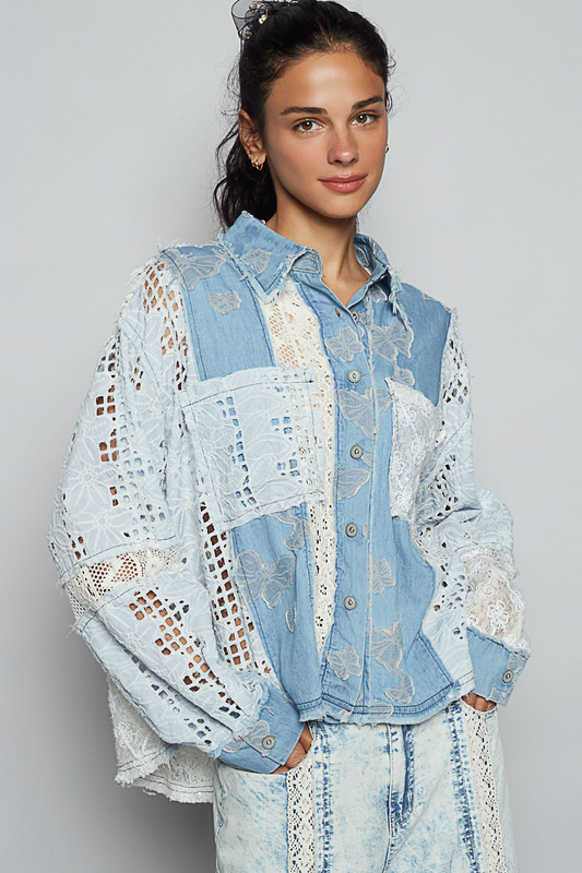 EASEL Rayon Challis Washed Button Down Shirt Magenta