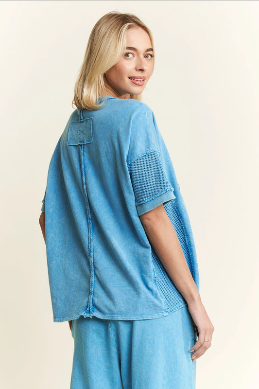 J. HER Mineral Washed Mesh Star T-Shirt Ocean Blue