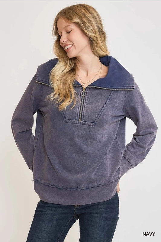 UMGEE Mineral Washed Half Zip Up Top