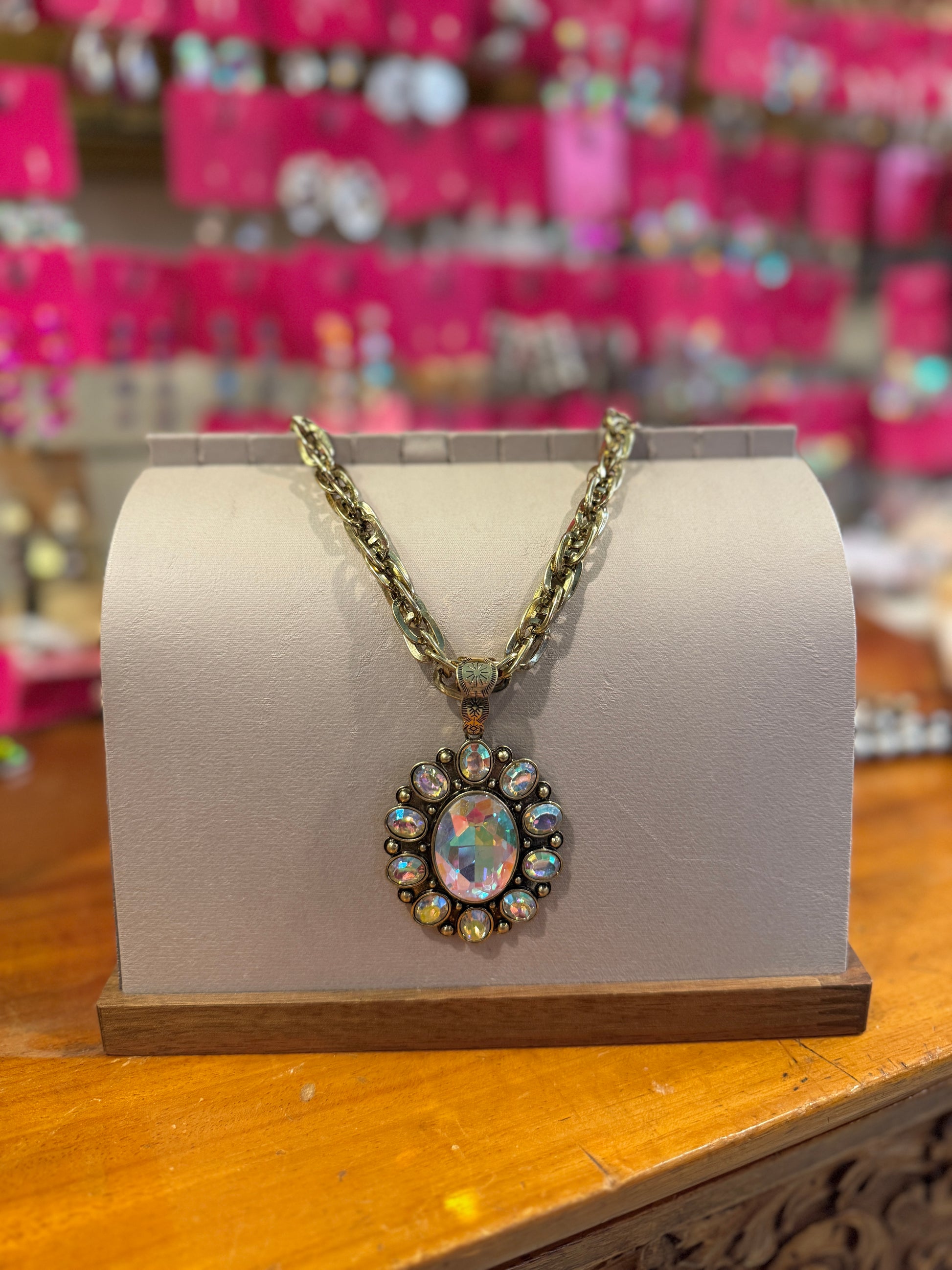 Antique Style AB Stone Burnished Gold Chain Necklace