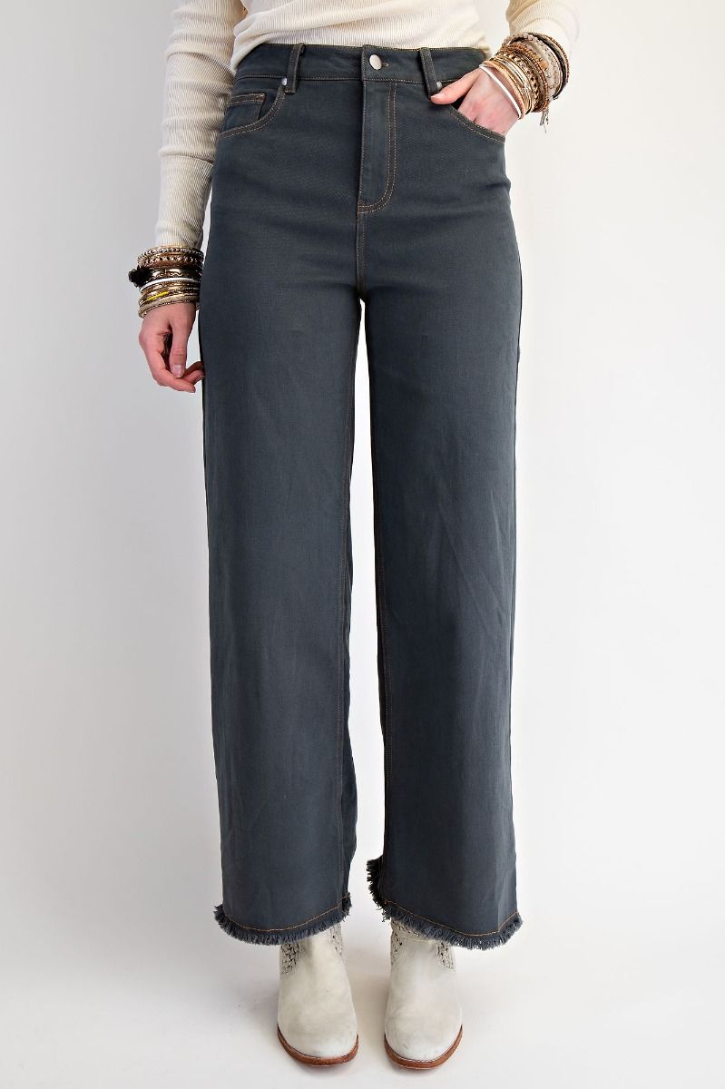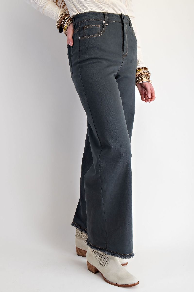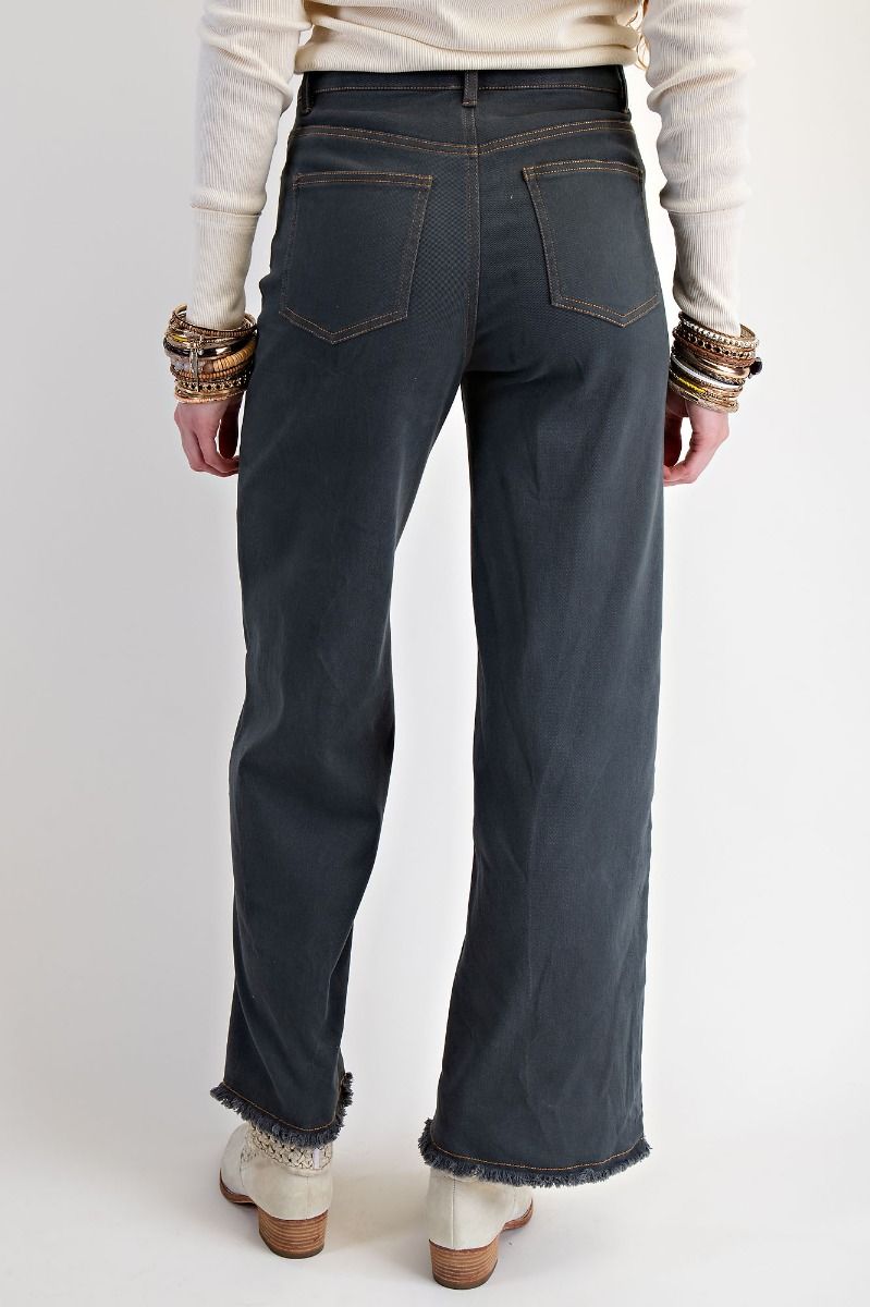 SELF FRAY BOTTOM WASHED STRETCH TWILL PANTS