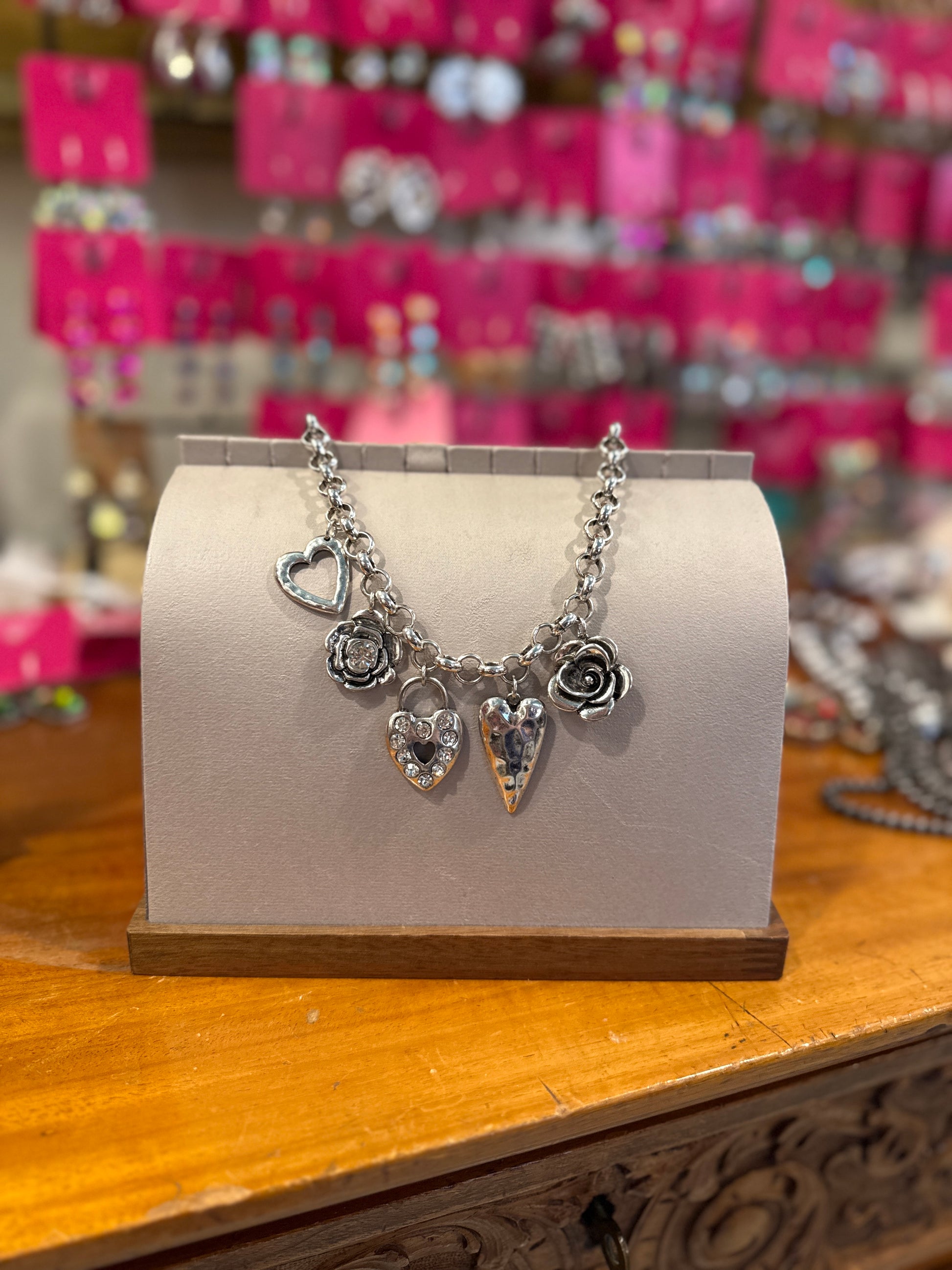 Heart and Flower Charm Necklace