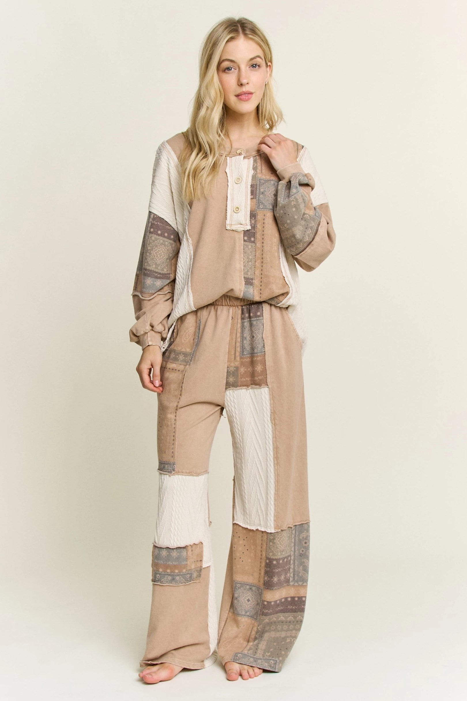 J. HER Mineral Washed Bandana Patchwork + Sweater Pants Latte