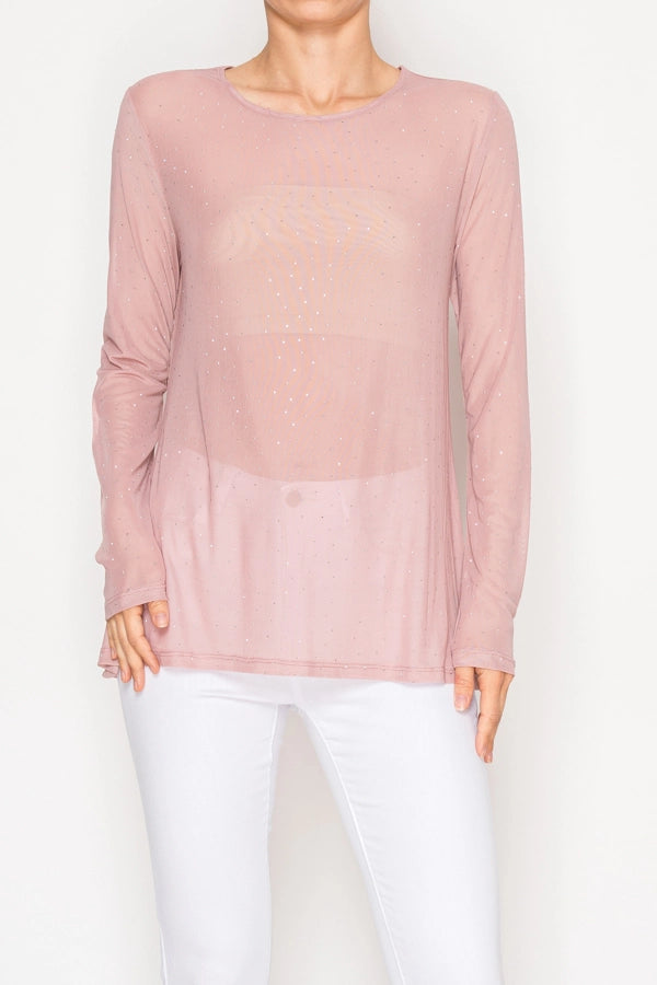 ORIGAMI Sparkly Sheer Mesh Top Pink
