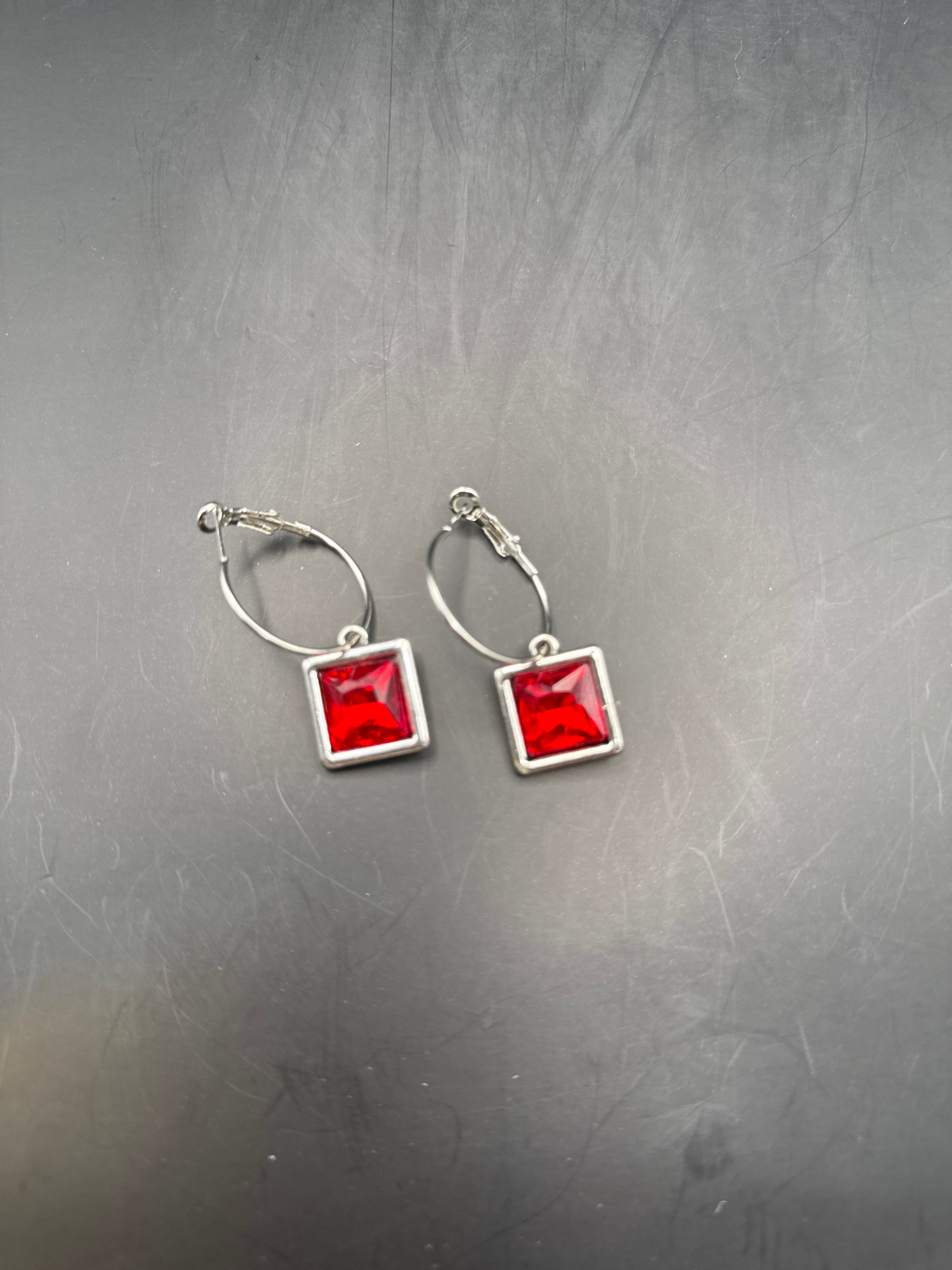 Square Red Crystal Earrings